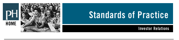 Employees of Pfeiffer High strive to maintain high standards of practice in all activities undertaken on behalf of the firm and our client companies. Recognizing that credibility and trust are two cornerstones of effective business communications, the firm stresses the importance of balance, accuracy and, in matters involving our publicly-held clients, strict adherence to regulatory guidelines in all communications. While the firm does not provide its clients with legal counsel, all employees are familiar with the requirements of state and federal securities laws mandating full and fair disclosure. The firm remains current with evolving communications industry practices, trends and regulations through individual memberships in the two premier industry trade groups – the Public Relations Society of America (PRSA) and the National Investor Relations Institute (NIRI).
