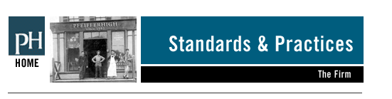 Employees of Pfeiffer High strive to maintain high standards of practice in all activities undertaken on behalf of the firm and our client companies. Recognizing that credibility and trust are two cornerstones of effective business communications, the firm stresses the importance of balance, accuracy and, in matters involving our publicly-held clients, strict adherence to regulatory guidelines in all communications. While the firm does not provide its clients with legal counsel, all employees are familiar with the requirements of state and federal securities laws mandating full and fair disclosure. The firm remains current with evolving communications industry practices, trends and regulations through individual memberships in the two premier industry trade groups the Public Relations Society of America (PRSA) and the National Investor Relations Institute (NIRI).
